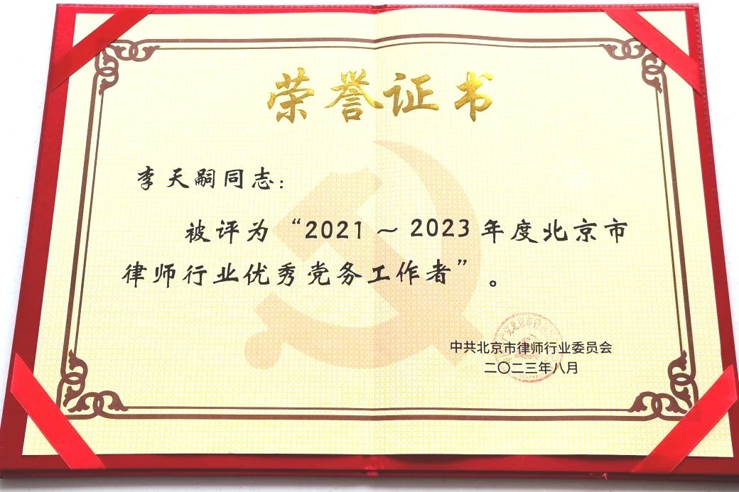 为深入学习贯彻习近平总书记关于“努力做党和人民满意的好律师”重要指示精神,响应并落实司法部党组提出的“五点希望”,充分发挥先进典型的示范引领作用,激励北京市律师行业基层党组织和广大党员奋勇争先、建功立业,持续深化律师行业党的建设,北京市律师行业党委近日召开了2021-2023年度党建工作先进典型表彰会。天元党委副书记郭威、党委委员李天嗣、律所执行主任吴冠雄分别荣获北京市律师行业党委的相应表彰。