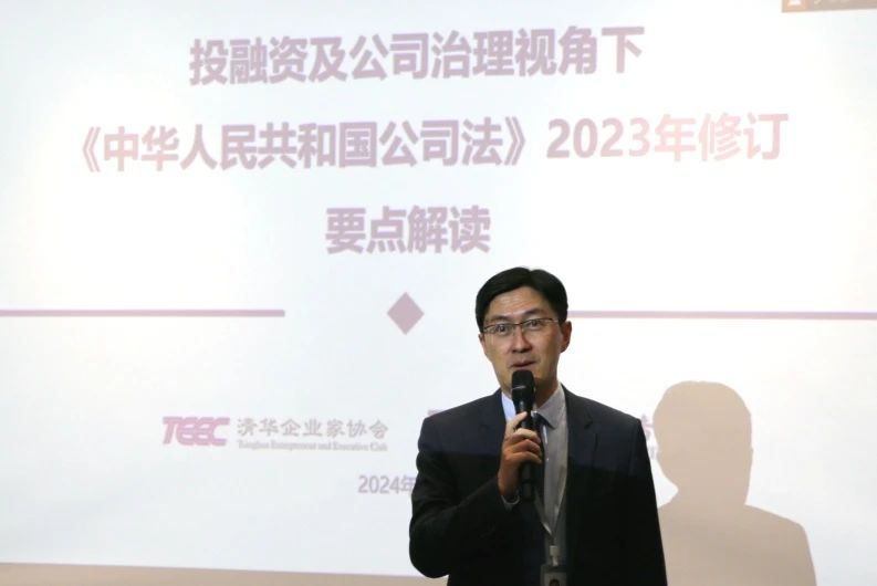 2024年1月18日,为企业家们理解本次新公司法修订对公司融资和治理的影响,帮助企业家加强公司内部监管、规范公司运营,天元律师受邀为清华企业家协会举办了《投融资及公司治理视角下〈中华人民共和国公司法〉2023年修订要点解读》专题讲座,本次讲座由并购部合伙人李海江律师和张征律师主讲,二十余名企业家到所参与。