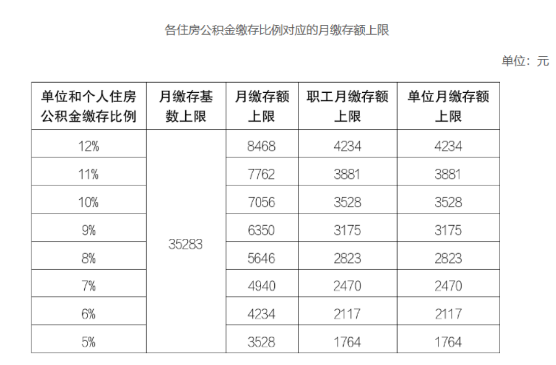 2024住房公积金年度住房公积金月缴存基数上限为35283元,具体缴存比例对应月缴存额上限见附件;月缴存基数下限为2420元,领取基本生活费职工的月缴存基数下限为1694元,新受理的住房公积金个人住房贷款,计算借款申请人贷款金额所使用的月基本生活费标准按1694元执行。