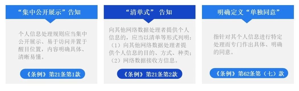 《条例》在上述要求的基础上,对网络数据处理者收集个人信息的义务做了细化与补充,主要包括: