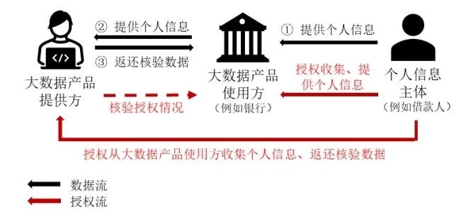问题2:信息核验场景下大数据产品提供方与被核验人无直接交互,如何向被核验人获得授权、如何确认大数据产品使用方也已获得授权?