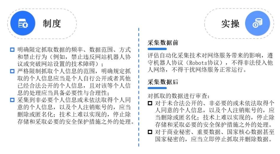 大数据产品提供方通过爬虫等自动化方式收集训练数据的,可以从制度和实操两个层面落实: