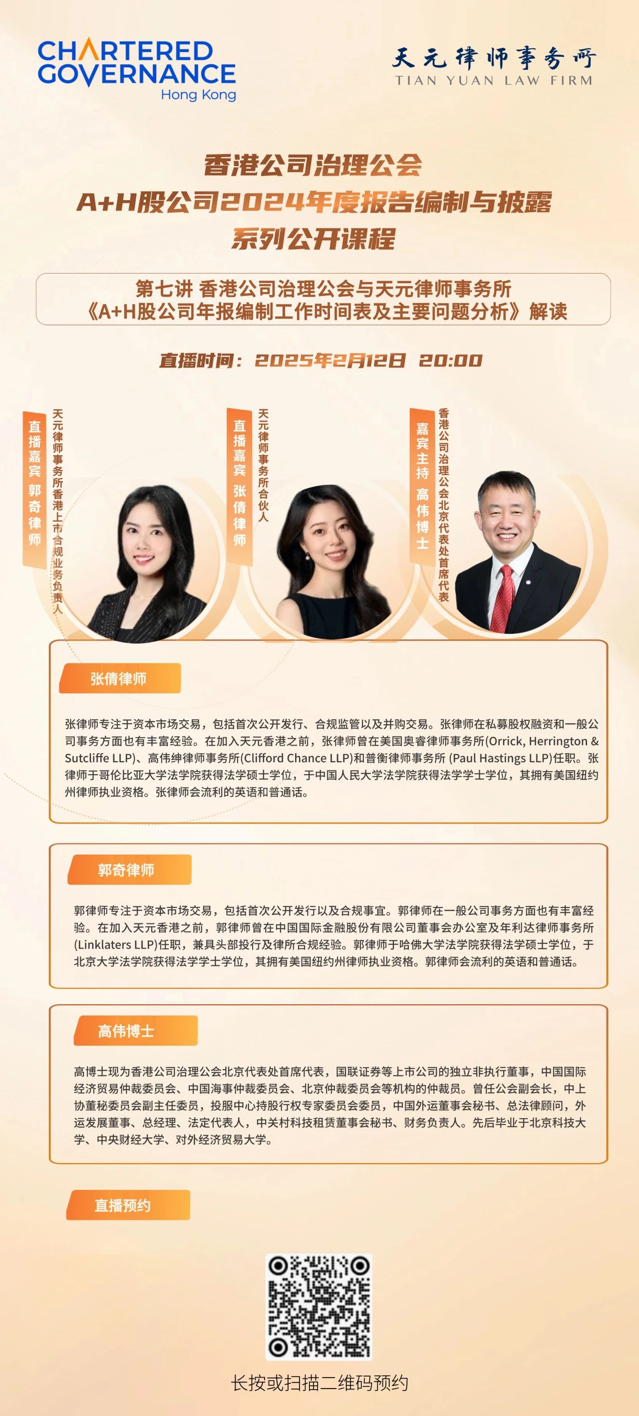 2月12日•公开直播课丨A+H股公司年报编制工作时间表及主要问题分析解读
