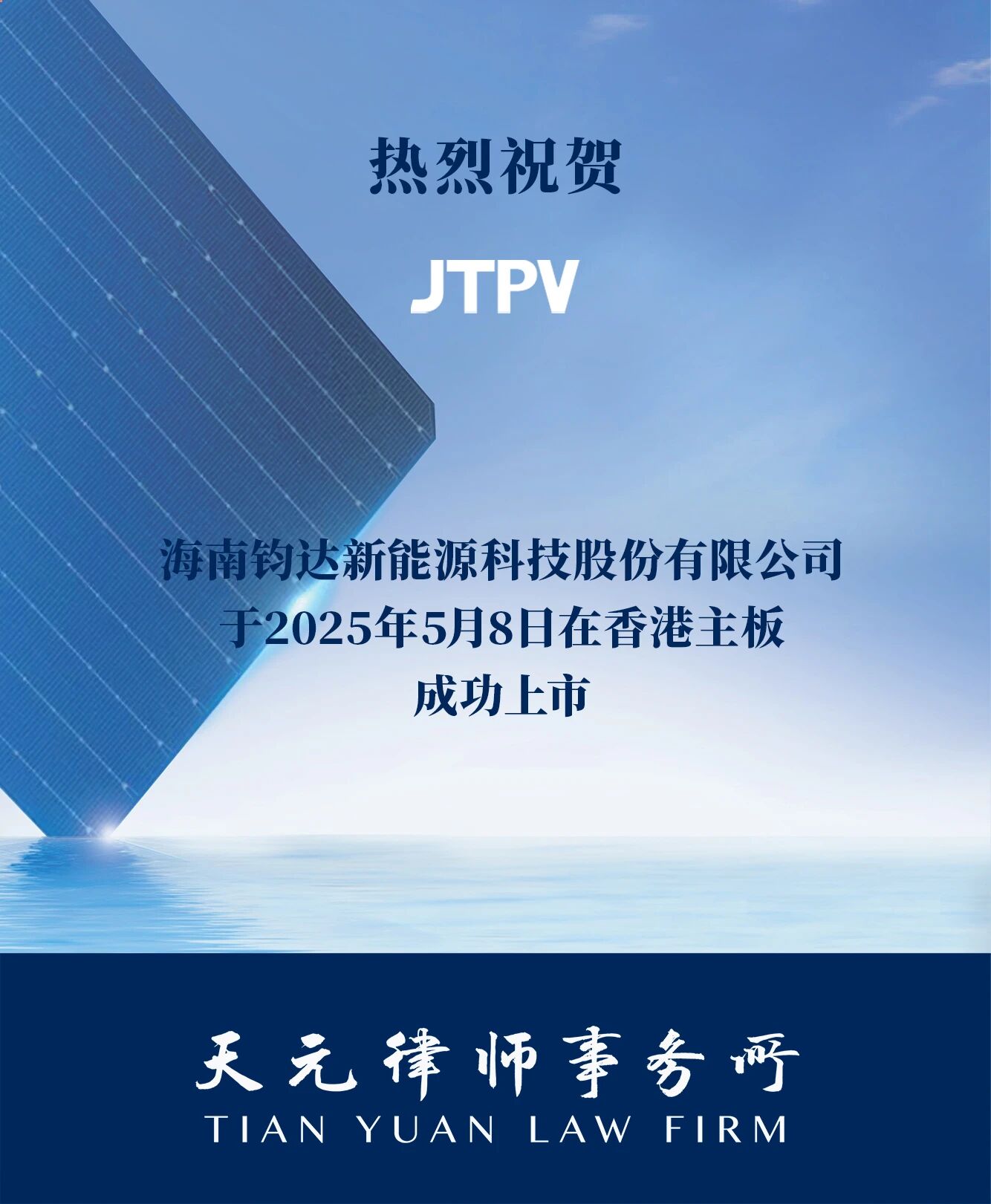 天元在钧达股份本次香港上市项目中担任公司境内法律顾问以及IP合规专项法律顾问,全程参与了法律尽职调查、出具法律意见书、发行文件审阅修改、中国证监会备案申请及境内外监管部门问询回复等工作,为其港股上市全过程提供了全面、专业的法律服务。