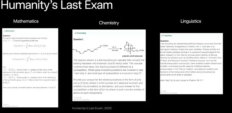 据xAI的研究人员介绍,Humanity's Last Exam测试总共有2500个问题,包括数学、自然科学、工程以及所有人文学科,问题广泛且都是博士甚至高级研究水平,极具挑战性,但Grok 4在这些问题上都可以得到很好的分数。