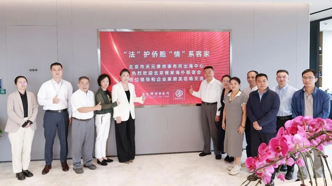 2025年9月17日,天元迎来了北京客家海外联谊会王建都会长、张宝华、何玲、陈企珠等一行人员的到访。北京客家海外联谊会作为联系海内外客家人的重要桥梁和纽带,始终致力于团结同胞、服务侨商、促进交流、增进合作。此次交流活动旨在增进双方的了解与合作,共同探讨为中国企业和侨胞提供更优质、更具针对性的法律服务与出海业务发展支持,为海内外侨胞企业在出海业务上保驾护航。
