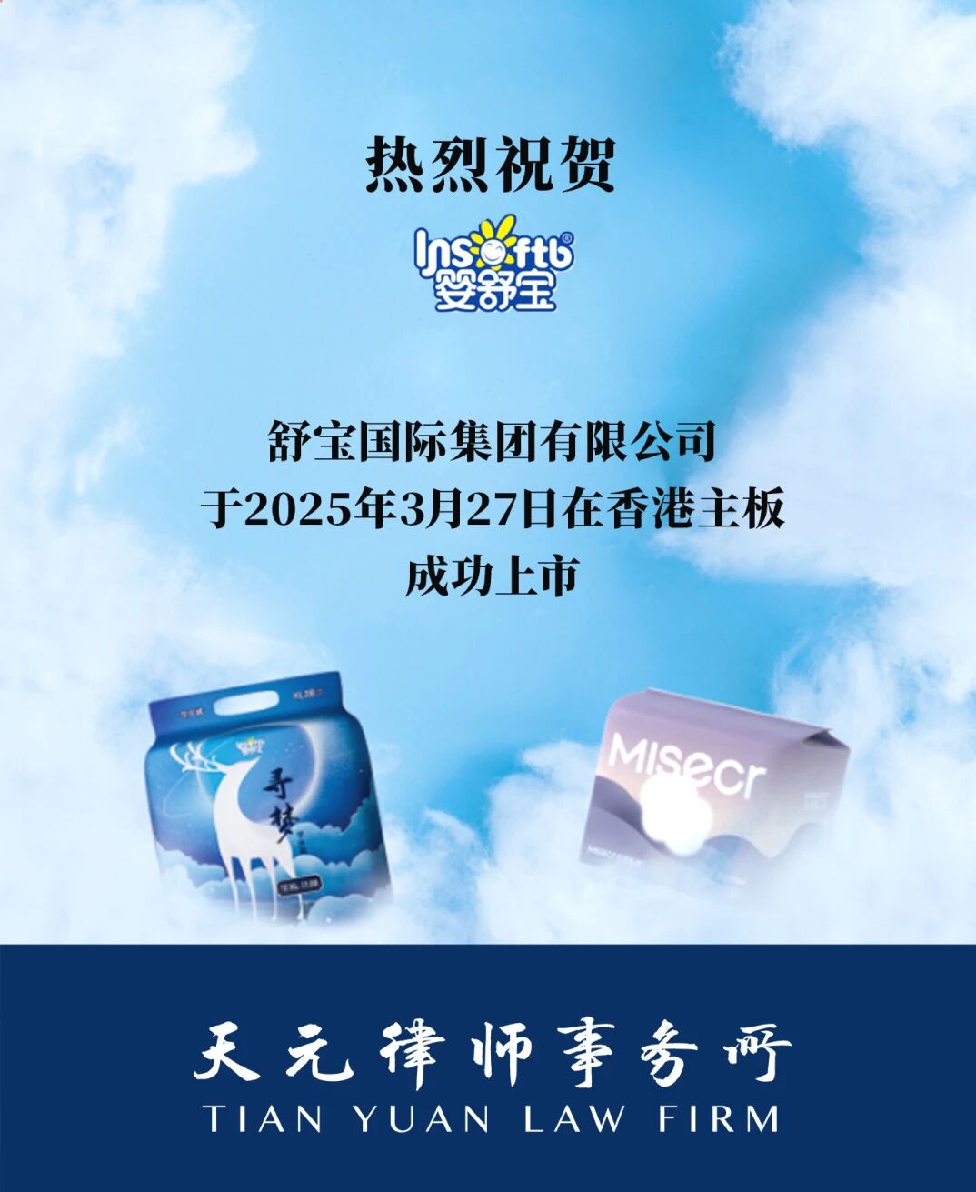 2025年3月27日,舒宝国际集团有限公司(以下简称“舒宝国际”,股票代码:2569)正式在香港联合交易所主板挂牌上市,成为中国婴童护理用品领域布局欧亚新兴市场的标杆企业。作为舒宝国际中国法律顾问,天元为本次上市提供了全程法律服务,助力企业实现全球化战略的重要跨越。