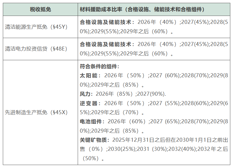 - 2031年生产的关键矿物:可获得原本抵免额度的75%;