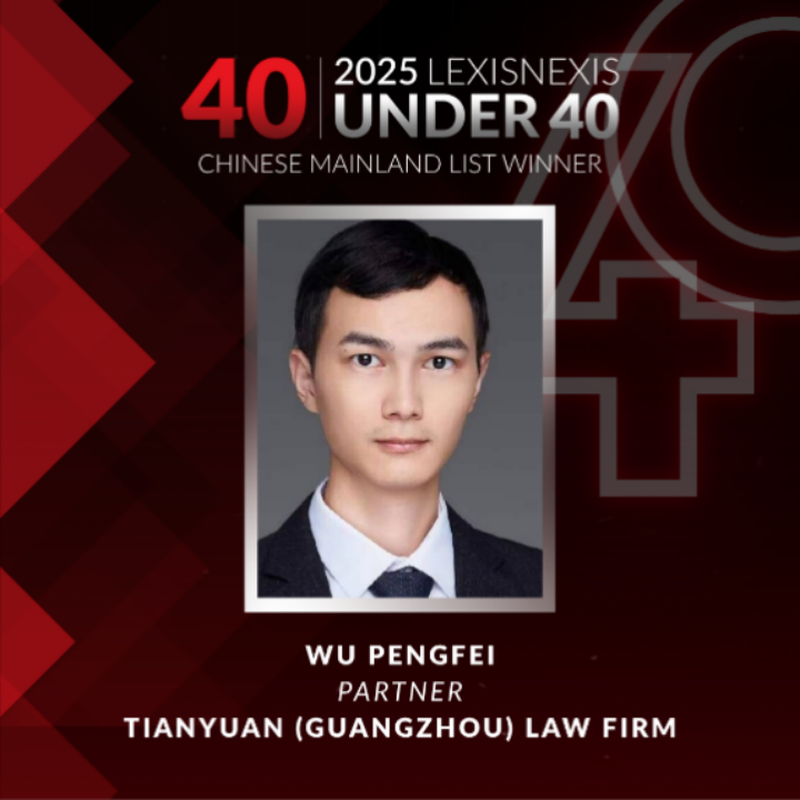 2025年11月6日,国际知名法律评级机构LexisNexis律商联讯正式公布「40位40岁以下精英」中国内地榜单(“LexisNexis 40 UNDER 40”,Chinese Mainland),天元广州办公室邬鹏飞律师凭借其在非洲投资与能源矿业领域的卓越专业能力和广泛行业影响力,成功入选该榜单。