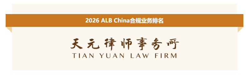 2月13日,《亚洲法律杂志》(ALB)公布了2026 ALB China合规业务榜单(2026 ALB China Regulatory Compliance Rankings),天元凭借在合规领域出色的综合服务能力及良好的市场口碑荣登榜单。