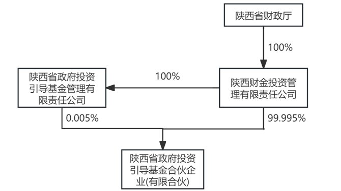 对于上述第一种政府投资基金,仅需判断相对于政府投资基金的管理机构而言,财政资金出资方是否为“外部投资人”。以一个典型的省级政府投资基金为例,陕西省政府投资引导基金合伙企业(有限合伙)(下称“陕西省引导基金”)系陕西财金投资管理有限责任公司担任有限合伙人,陕西省政府投资引导基金管理有限责任公司担任普通合伙人的政府投资基金,陕西财金投资管理有限责任公司、陕西省政府投资引导基金管理有限责任公司均为陕西省财政厅直接或间接持股100%的主体(陕西省引导基金的出资结构图见下表)。陕西省引导基金未在协会备案为私募基金,笔者理解,核心原因为陕西省引导基金100%的资金来源于陕西省财政资金,不存在具有外部募集性的募集行为,不属于私募基金,进而亦不属于私募股权基金。