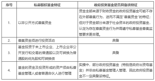 基于上述4点分析,可以将政府投资基金是否具备私募股权基金特征问题总结为下表: