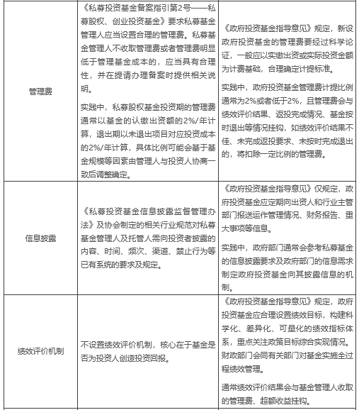 除第二部分列举的政府投资基金与私募股权基金核心特征存在差异与共同点外,政府投资基金与私募股权基金在其他方面亦存在诸多异同点。