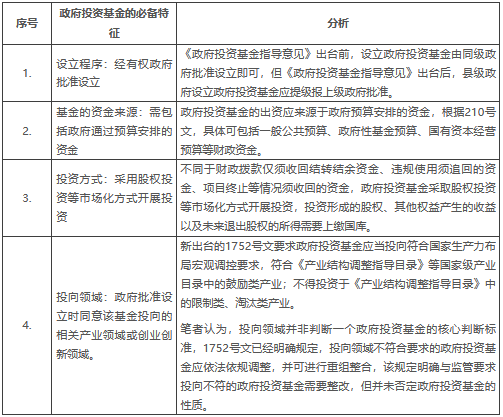 根据《政府投资基金指导意见》对政府投资基金的定义,政府投资基金必须同时具备如下特征: