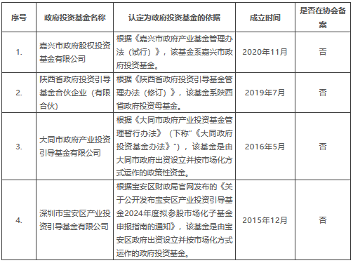 立法层面,虽然《私募条例》第六条规定,国家对运用一定比例政府资金发起设立或者参股的私募基金的监督管理另有规定的,从其规定。但需要注意的是,《私募条例》并未使用政府投资基金的概念,只是明确政府出资设立或参股的私募基金另有监管规定,应适用相应监管规定,因此,无法直接从该规定逻辑推导出政府投资基金属于私募股权基金。实践层面,如政府投资基金均属于私募股权基金,则根据《私募条例》《私募投资基金监督管理暂行办法》,政府投资基金亦应履行私募基金备案手续,但基于公开信息,部分政府投资基金未在协会备案为私募投资基金,具体见下表。