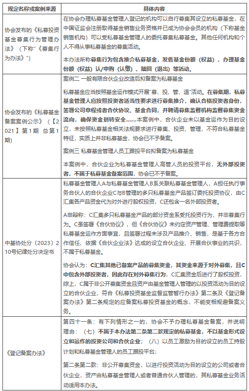 - 募集行为的核心在于是否存在对外募集资金。结合协会的上述纪律处分案例,如存在对外募集行为且募集的资金以投资活动为目的,则属于应备案的私募基金,未由管理人管理、未收取管理费并不能成为不属于私募基金的抗辩理由。